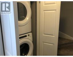 This 2 level townhome is impressive with many upgrades. Urban townhouse condo unit located in Desirable Huron Park! This spacious unit features 1225 sq.ft. on 2 floors with 2 BALCONIES. The main floor is bright and open concept with 9' ceiling height. The white kitchen is impressive with quartz counters, tiled backsplash, HUGE ISLAND with dark cabinets and a flush breakfast bar, stainless steel appliances (fridge with ice maker) & upgraded kitchen faucet with pull out. The living room has access to a large, private balcony that overlooks parkland. Main floor 2piece bathroom and laundry closet with stackable washer/dryer. The upper level is as impressive with 2 bedrooms and 2 bathrooms. The Primary bedroom also has access to the 2nd balcony also with view of parkland. Lots of closet space and the ensuite features a Large tiled WALK IN SHOWER with upgraded glass shower wall/door, nice sized vanity with quartz counters. One parking spot assigned #D63. Walking distance to restaurants , Schlegel park-soccer fields-splash pad-playgrounds, groceries, pharmacy, public transit and schools. (id:50886)