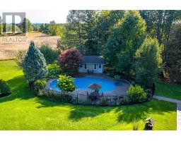 The complete country package with room for the in-laws and potential to work from home! Breathtaking is the only way to describe this fabulous home and property! Situated on approx. 34 acres (16 workable) with attached 3-car garage, separate 3,840 sq. ft. workshop (1,920 sq. ft. shop, 1,920 sq. ft. loft), heated wood working area, separate driveway, large heated shed, heated in ground saltwater pool, cabana and all the privacy you could ever hope for. All this plus approx. 4500 sq. ft. of beautifully finished living space! A large, covered porch welcomes you into this immaculate custom-built home where you will find quality finishes, tasteful decor and attention to detail from top to bottom. The well-appointed main level offers a spacious living room with fireplace open to the dining room creating the perfect gathering space for family and friends. A gourmet kitchen with stylish shaker cabinetry, quartz counter, breakfast bar, SS appliances and incredible walk-in pantry will surely delight the cook in the home. The adjoining family room enjoys a toasty fireplace and walkout to the patio overlooking the beautiful grounds and separately fenced pool. An office, powder room, enviable laundry room and garage access complete the level. The upper level offers 4 spacious bedrooms, the primary with a walk-in closet and updated 3-pc ensuite. The 3 remaining bedrooms share a luxurious 4-pc bathroom. The finished lower level adds to the living space with an open concept layout offering a gorgeous kitchen with shaker style cabinetry, quartz counter, SS appliances and breakfast bar. The adjoining rec room enjoys another fireplace and walkout to a covered patio. A 5th bedroom, 3-pc bathroom, huge cold cellar and loads of storage space complete the package. And talk about location surrounded by the Bruce Trail for your hiking pleasure and just steps to Limehouse Conservation Area and the quaint Limehouse Public School with easy access to Acton and Georgetown for all your needs. (id:50886)