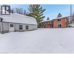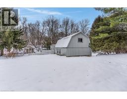 This 1980 reclaimed brick bungalow, situated on a 3/4 acre lot with a walkout basement, offers ample space for a growing family, plus significant parking for cars and larger vehicles. Unique to this property is an outbuilding, with endless possibilities for its future use (e.g., woodworking/spray booth) as several machines remain onsite. The main floor of this home features an eat-in kitchen with balcony access, a dining room, and a living room with large windows providing natural views of the sprawling backyard. The master bedroom has a walk-in closet, an ensuite bath, and balcony access. Adjacent to the master bedroom is the main bathroom, which was renovated in 2019, and two more spacious bedrooms, both with double closets. The lower level includes a full walkout with a rec room, a storage/pantry room, a fourth bedroom or office with floor-to-ceiling windows, and a 3-piece bath with shower. The lower level has potential for an in-law suite/rental. Alternatively, the separate entry provides a terrific at-home office. Recent improvements of the home include a new balcony floor (2024), central air (2023), furnace (2024), owned electric water heater (2021), and eaves troughing (2023). Don't miss this delightful country property, only five minutes south of Cambridge, with limitless potential! (id:50886)