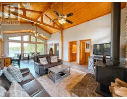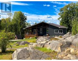 Turnkey Lake Manitouwabing Four-Season Bungalow. Discover this fully furnished, recently renovated bungalow situated on 1.1 acres with 238 feet of waterfront along a quiet bay on Lake Manitouwabing. Enjoy the beauty of nature right in your backyard or at the sandy beach, where the Canadian Shield has been thoughtfully incorporated into the landscaping and gardens. This spacious home offers three bedrooms plus a den and two 3-piece bathrooms. The open-concept great room/ dining room, and kitchen create a welcoming atmosphere, enhanced by beautiful views from the near wraparound deck. Walkouts to both the front and back decks allow for easy indoor-outdoor living. The covered porch provides an ideal space for barbecuing or entertaining, even on rainy days. Inside, the house boasts vaulted ceilings, a galley kitchen with a breakfast bar, a wood-burning stove, and a forced-air propane furnace to keep you comfortable on cool or wintery nights. Outside, there is a large garage and workshop, as well as ample parking to accommodate family and guests. The sandy beach waterfront features a Bunkie for additional guest accommodation, a firepit, and storage space for recreational equipment. There is also a dock for boating and swimming. The quiet bay, located just off Burnett's Bay, connects to kilometers of water for boating, exploring, tubing, waterskiing, or fishing on this scenic finger lake. Take a short boat ride or drive to Tait's Landing Marina for family treats like ice cream. Golf enthusiasts can visit the Ridge of Manitou Golf Course during the spring, summer, and fall. In the winter, the area transforms into a playground for ATV riding, snowmobiling, ice fishing, snowshoeing, and cross-country skiing. The property is conveniently located just twenty minutes from the McKellar Market and Parry Sound, making shopping and amenities easily accessible. (id:50886)
