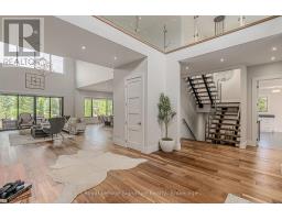 This custom-built home in the Nipissing Ridge community offers luxury mountain living at the base of Alpine Ski Club and Craigleith. Steps from skiing, hiking, and the shores of Georgian Bay, and minutes to the boutiques, restaurants, and golf courses of The Blue Mountains, it blends year-round recreation with upscale comfort. The 20-foot ceiling great room features expansive windows framing mountain views and a 48-inch linear gas fireplace. The chef's kitchen is equipped with a quartz waterfall island, prep area, beverage station, and premium appliances including a 48-inch Monogram gas range and fridge, Miele dishwasher, wine cooler, and beverage fridge. The main floor primary suite provides a private retreat with a floating vanity, double sinks, glass-enclosed double shower, freestanding tub, heated floors, and a custom dressing room. Engineered hardwood floors, a pre-wired sound system, and a dedicated office enhance everyday living. Upstairs offers a family/games room and three bedrooms, each with an ensuite. The finished lower level includes a family room, games area, two bedrooms, additional bathrooms, in-floor heating, and durable vinyl flooring. Exterior features include stone and wood finishes, an 8-foot glass-paneled entry door, and 9x9 garage doors with a lift system. Move-in ready, this is a rare opportunity to enjoy an active, four-season lifestyle in one of the areas most sought-after communities. (id:50886)