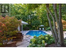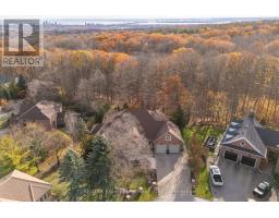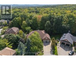 Discover this exceptional custom executive bungalow with southern exposure positioned at the end of a peaceful cul-de-sac on a 1/3 acre lot,where luxury meets tranquility backing onto a wooded ravine connecting the Bruce Trail and all its beauty.This stunning 3+1 bdrm,3.5 bath residence spans 6,327 sq ft of meticulously designed living space,perfectly situated in Burlington's desirable Escarpment neighbourhood.Natural light cascades throughout the home,enhanced by impressive 10-12ft ceilings on the main level and over 9 -12ft ceilings on the lower level.Open concept Great Room features hardwood flooring and a cozy gas f/p flowing seamlessly into the gourmet kitchen.The kitchen showcases pristine cabinetry,a large island and breakfast area w/ convenient access to the outdoor 16ft x 22ft balcony overlooking your backyard.The perfect places for casual entertaining. Elegant formal dining room accommodates larger gatherings, while a separate main-floor office provides a quiet workspace.The oversized primary bdrm offers a private retreat with gas f/p,spacious w/i closet,and updated 5 pc ensuite. 2 addt'l bedrooms, 4 pc bath, and powder room complete the main level along with the practical elements of a laundry room with direct garage access.The finished LL expands living options w/ a rec room complete with pool table area,media room,and a gym area with direct access to the yard. Guest bedroom is located next to a 4-pc bath.The Utility room w/ 12ft ceiling provides ample storage,maximize functionality.Step outside to discover a private retreat w/ manicured gardens featuring an inground saltwater pool & extensive entertaining areas accessible through 2 separate walkouts from the LL.A double oversize garage provides space for a car storage lift system. This prime location offers convenient access to highways,shopping,walking trails,& golf, creating the perfect blend of suburban serenity and urban convenience. Freshly paint thru/out ensures move-in readiness. LUXURY CERTIFIED (id:50886)