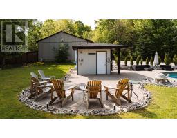 Welcome home to 129 Bass Line - where serene luxury and family comfort seamlessly blend. Set on nearly 1.8 lush acres, this spacious 5-bedroom, 3-bath residence offers 3,400 sq ft of bright, inviting living space. The thoughtfully designed interior features a spacious kitchen perfect for entertaining, an airy dining room, and an inviting living area anchored by a custom stone propane fireplace and soaring ceilings. Upstairs, retreat to the expansive primary suite, complete with a private ensuite and calming forest views. Step outdoors to your own personal resort: a heated saltwater pool, pool house with bar and bathroom, and a relaxing hot tub set seamlessly into the deck. The beautifully landscaped grounds include vibrant gardens, mature trees, and a tranquil natural pond - creating a peaceful escape. A cozy 4-season bunkie with electrical and WiFi offers flexible space for guests, hobbies, or remote work. Perfect for hobbyists, the impressive 1,200 sq ft workshop is equipped with in-floor heating, 200-amp service, and ample workspace. Fully fenced and secured by automatic gates, the property provides privacy and peace of mind. Ideally located in the coveted Marchmont school district, you're just steps from Bass Lake and minutes to conveniences. 129 Bass Line isn't just a home - it's a lifestyle. (id:50886)