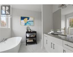 Welcome to this stunning brand new 2-storey freehold townhome located in the prime West Hamilton Mountain. Offering approximately 1,500 sqft. of stylish, modern living space. This carpet-free home blends executive comfort with everyday convenience with NO condo or road fees! The main floor boasts 9ft ceilings, a fully upgraded kitchen featuring stainless steel appliances, beautiful tilework, and an elegant oak staircase with matching railings that complement the pre-finished flooring. Upstairs, the spacious layout continues with bedroom-level laundry for ultimate convenience. The primary suite is a private retreat, complete with a luxurious 4-piece ensuite. Downstairs, your additional 600 sqft. unfinished basement comes with a rough-in for a future bathroom — perfect for a future rec room, home office, or guest suite. Over $40,000 in upgrades included! The home is covered under Tarion's Ontario New Home Warranty for your peace of mind. This move-in ready, carpet-free townhome offers everything you need — all with no condo or road fees! Fantastic location near schools, parks, shopping, and quick highway access — perfect for families, professionals, or investors. Multiple units and floor plans available. (id:50886)
