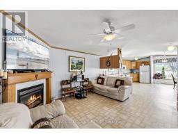 Welcome to year-round living at the charming Shady Acres on Rice Lake! This well-maintained two-bedroom, two-bathroom home - proudly owned by just one owner - has been thoughtfully built for durability and comfort. Fully sided and topped with a metal roof, it offers both lasting quality and low maintenance. A full concrete driveway, pathway and pad beneath the home provide added storage, easy upkeep, and peace of mind. A spacious sunroom addition expands your living area, offering even more room to relax or entertain. Designed with accessibility in mind, the home features extra-wide doors and hallways, along with a convenient access ramp at the back. Inside, the open-concept living area is centered around a cozy propane fireplace, perfect for gatherings or quiet evenings. The large eat-in kitchen makes entertaining easy, and from your dining area or covered front porch, you can take in beautiful views of the water. The outdoor spaces of the home are just as cozy, as in side with multiple seating areas. Additional storage for all of your tools and toys is available in the detached shed. Beyond your doorstep, the park offers a vibrant community lifestyle enjoy everything from pickleball and swimming to boating adventures. Launch your personal watercraft from the onsite boat launch and explore the stunning Trent Severn Waterway. Don't miss this opportunity to enjoy four-season living in a welcoming waterfront community! (id:50886)