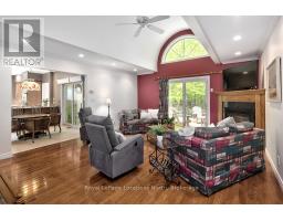 This spacious bungalow resides on a large .46 Acre lot within the sought-after neighbourhood of Nipissing Ridge. The main floor encompasses a variety of living spaces and features two fireplaces, as well as views overlooking the expansive rear yard. The main floor primary bedroom also enjoys views of the rear yard and includes a large ensuite appointed with a soaking tub. Two additional bedrooms and a 2nd full bathroom complete the main level. The incredible lower level offers substantial living space, including a large family room, an exercise area, two bedrooms with ample natural light from large above ground windows, and a 3rd full bathroom. Furthermore, the lower level provides large unfinished areas suitable for storage or future additional living space. Tear Off 30 Year Roof, Furnace & A/C replaced in 2016. (id:50886)