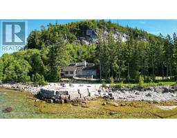 Known as the "Rock House," this distinctive and remarkable two-story stone cottage, has served as a family retreat for generations. Nestled on 2.5 acres, this fully renovated cottage boasts an addition completed between 2006 and 2008. It features exquisite stonework both inside and out, complemented by a beautifully designed flagstone patio where one can unwind and take in the stunning views of Georgian Bay. The property extends to 664 feet of shoreline, complete with a shore well and firepit located at the deeded waterfront. Envision gathering with family and or friends by the fire pit under the night sky, perhaps stargazing on a clear evening. Upon entering the cottage, a warm, welcoming great room greets you, alongside a living/dining area with a snug woodstove insert, a galley-style kitchen, two spacious bedrooms, a two-piece powder room, laundry amenities, and a three-piece bathroom, all situated on the main floor. The upper level houses two more bedrooms and a loft space that doubles as additional sleeping quarters. Plenty of storage throughout. The cottage is equipped with in-floor heating and electric baseboard heaters. Additional features include an outdoor stone refrigerator room, a sauna for post-swim relaxation in Georgian Bay's invigorating waters, and a boathouse/storage area for watercraft and gear. Moreover, the property is outfitted with a shore well, a drilled well, an aerobic system, and a crawl space insulated with spray foam. The exterior showcases stone and Hardie board siding. This unique estate lies against the backdrop of the escarpment in Barrow Bay, in proximity to the Bruce Trail and a brief drive from the village of Lion's Head. The property fronts the waterfront (664 feet),separated by a traveled road, with the seller owning the waterfront land across. Taxes are $3,967.17. Cottage can be used for year round living. One must see it to truly appreciate it! Located on quiet No Exit Road. Please do not enter the property without a REALTOR (id:50886)