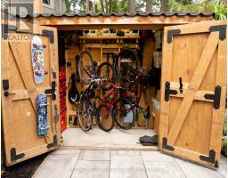 A Home by the Park. Stylish and rare, this fully renovated, move-in-ready home sits perfectly beside Dovercourt Park - where city energy meets neighbourhood ease. Thoughtful design, natural light & modern updates combine in this exceptionally appointed 3-bdrm, 2-bath home, offering a lifestyle as inviting as the community itself. Lush prennials, tall grasses, and a Japanese Maple frame a prof. landscaped front garden & interlocking paver walkway (2024), guiding you to a cedar porch (2024) & a brick facade, reconstructed in 2015, showcasing polished, contemporary curb appeal. Inside, a coveted front mudroom w/heated flrs leads to spacious, sun-filled open-concept living/dining areas featuring oak hrdwd flrs & an elegant open oak staircase - a space designed for dinner parties, family time or quiet moments w/a good book. The updated white kitchen, equipped w/stainless steel apps, flows seamlessly to a spectacular deck (2020) & garden - prof. landscaped (2020) w/a stone patio, lush perennials, & cedar bushes, all bathed in warm western sunlight. Imagine weekend brunches with friends, summer evenings under the shade sails, or a serene morning coffee surrounded by greenery. Upstairs, sunlight streams thru a thoughtfully placed skylight, illuminating the landing & leading to 3 generously sized bdrms. A stylish 4-pce bath, b/i closests & large windows complete the level, the lower level has been thoughtfully creating a bright, airy, & effortlessly inviting retreat/sanctuary reimagined to combine modern comfort w/functional elegance. Ren'd in 2015, it features new flooring & trim, updated plumbing, waterproofing, fresh windows, & a sleek 3-pce bath w/a frameless glass/cubless shower. Ample storage & a laundry rm complete this bright, flexible living space. A custom-made cedar shed adds style & practical storage, while the home enjoys a pedestrian/transit - friendly location within short walking distance to schools, parks, eateries, shops & more!**OPEN HOUSE SAT/SUN 2-4** (id:50886)
