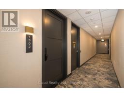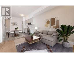 Step into modern living with this brand-new one-bedroom plus den condo at Anthem at The Metalworks, part of the sought-after Riverwalk condominium community in downtown Guelph. Heat, water, and high-speed internet are included, keeping things simple and cost-effective. This unit features soaring 10-foot ceilings, and the interior doors rise over 7.5 feet, adding to the sense of height and openness. Large windows bring in great natural light and offer an unobstructed south-east facing view, giving you a bright start to every morning. You'll notice the upgraded California ceiling finish and clean 6-inch baseboards the moment you walk in. The living room and den include engineered hardwood floors, and the den is set behind double doors, making it a functional and private space for work or guests. The layout is efficient and well-thought-out, maximizing every square foot. The kitchen includes premium stainless steel appliances, soft-close cabinetry, and durable quartz counters. In-suite stacked laundry adds everyday convenience. The four-piece bathroom continues the same elevated style with matching cabinetry and quartz surfaces. Smart home features include a programmable thermostat, a security system, and access to the building's digital amenities and booking platform. Anthem offers a strong lineup of amenities: a piano lounge, a co-working studio, a full fitness club with a cycle room, and a pet spa. The third-floor social club and terrace are great for hosting, while the seventh-floor sunrise deck delivers sweeping views. The building also includes indoor bike racks, secure underground parking (one space included), and Wi-Fi throughout the lobby and amenity areas. Living in the Riverwalk community puts you steps from Guelph Central Station, Priory Park, natural food markets, the public river walk, River Square, and Mill Square. (id:50886)