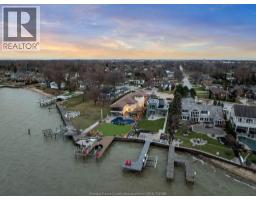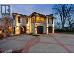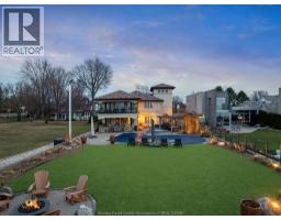 Experience exceptional waterfront living in this iconic Lake St. Clair estate. Privately gated and tucked behind a stately privacy wall, this timeless 2-storey home offers stunning lake views from nearly every room. Featuring 6 spacious bedrooms and 4.1 luxurious baths, including a serene primary suite with private balcony overlooking the water. The chef-inspired kitchen boasts custom cabinetry, high-end appliances, and generous space for entertaining. Enjoy resort-style outdoor living with an in-ground pool, hot tub, covered bar, fire pit, and a 2 private dock equipped with boat and dual Sea-Doo lifts. Two 2-car garages (attached and detached) offer ample storage. A rare opportunity to own a private, lakefront retreat offering elegance, comfort, and unmatched views—all just minutes from local amenities. (id:50886)