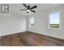 Nestled on 2 private acres, this stunning two-year-old custom-built modern farmhouse offers 2,800 sq. ft. of beautifully finished living space with 4+1 bedrooms and 3 +1 bathrooms. Step inside to soaring ceilings and expansive windows that flood the home with natural light and showcase breathtaking sunrises and sunsets. The chef's kitchen is a true showpiece, featuring a gas range, quartz countertops, built-in wine cooler, panel dishwasher, wireless charging stations in the island, and a charming built-in coffee bar.The open-concept living area boasts a cozy gas fireplace with a stone surround and flows effortlessly to the outdoor living space through oversized patio doors-perfect for entertaining or quiet evenings under the stars. Enjoy plenty of functional design in the mudroom and main-floor laundry, offering abundant storage and convenient access from the garage. A main-floor guest suite with a full 3-piece ensuite provides privacy and comfort for visitors.Upstairs, you'll find two primary bedrooms, each with their own private vanity rooms, plus a third room ideal for a home office or additional bedroom.The fully finished lower level, with 9-ft ceilings, is perfectly designed for multi-generational living. It features a spacious bonus room, striking custom bar with reclaimed barn board, an additional bedroom, bathroom, laundry hookups and a separate private entrance from the garage. Only two years old, this exceptional custom-built home combines modern luxury, functionality, and the quite peace of country living with quick access to Hwy 11 for convenience. This is more than a property, this is a forever HOME. (id:50886)