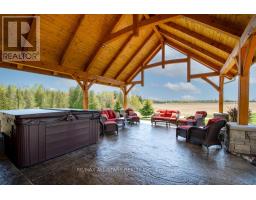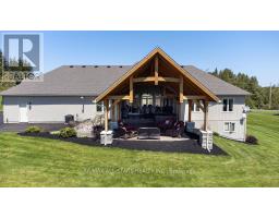 Stunning Custom-Built Stone Bungalow! This Exceptional home sits upon 1.89 acres surrounded by farmer's fields and lush green landscaping. From the moment you enter the paved drive, the extraordinary experience begins with flagstone walks, stamped concrete patios, beautiful gardens, and a grand entry to an open-concept kitchen, living and dining rooms. A primary suite with a walk-out to the hottub, stunning ensuite bath, walk-in closet, hardwood floors, gorgeous windows, custom blinds, impressive fireplace and granite counters. Downstairs offers endless possibilities either as an entertainer's paradise or in-law suite with a second kitchen, living room, bath, office/bedroom space, storage, walk out and entry to the garage. The entertaining can continue under an impressive pine pavilion, a breathtaking view, complete with lighting, surround sound and a custom fire pit. Not to be excluded is the heated triple car garage with epoxy floor and an entry to your home for both levels. This home isthe epitome of country luxury! (id:50886)