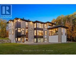 A BREATHTAKING private family retreat awaits! This is the ideal urban escape situated on over 2 acres in one of Ottawa's most beautiful estate communities! The circular PAVED driveway guides you towards a residence that demands attention! Strategically situated, professional landscaped, stone & stucco surround PLUS the gorgeous mature trees provide a memorable first tranquil impression! In floor heat can be found in the separate garage- an enthusiasts dream! Spanning approximately 7000 square feet of finished space, this home represents the pinnacle of modern luxury! The thoughtful floor plan offers meticulous craftsmanship, floor to ceiling windows, a 2 story GREAT room, 10 foot ceilings on the main & 9 on the upper & lower level & 8"oak hardwood. The Deslaurier kitchen was designed for both style & function, it offers TOP of the line Chef's appliances, everything on your DREAM WISH list & more INCLUDING the most amazing walk in pantry you have seen! The oversized patio doors allow for seamless indoor/outdoor living & guide you to the AMAZING outdoor living area! The 2 sided fireplace allows dining to become an experience in the formal dining room! PLENTY of enviable designs throughout including the mudroom & laundry room (2 washer & 2 dryers)! This home offers 2 primaries- 1 on the main & one of the 2nd! 5 bedrooms, 4 ensuites PLUS 2 powder rooms & a MAIN floor office! The glass used within the home enhances the feeling of spaciousness throughout especially on the staircase & the landing! The 2nd floor primary retreat offers a fireplace, private balcony, INCREDIBLE walk in closet & a SUPER LUX 5 piece ensuite. ALL baths offer heated floors. The FULLY finished WALKOUT lower level is an absolute masterpiece with OVER 2000 SF of finished space, glass walls in the gym & the large open area is SURE to impress! 200 amp, 20Kw Generator, Top of the line water filtration system, auto lighting & window blind system controlled through the Lutron app. NO expense spared! (id:50886)