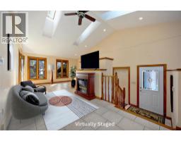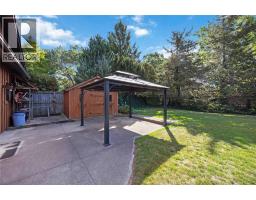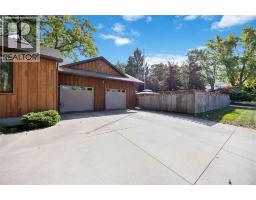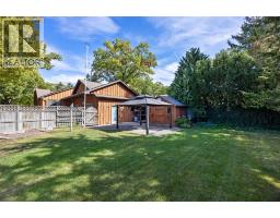 Live on prestigious Lakeshore Road. This charming bungalow sits back on a large corner lot with an extra-wide driveway on a quiet side street. Surrounded by trees and steps from beaches, schools, and Sunripe Freshmarket. It features 3 main-floor bedrooms, including a primary with a 4-pc ensuite and walk-in closet, plus a second 4-pc bathroom. Solid Canadian maple floors, cathedral ceilings with skylights, and a sunken living room with a gas fireplace. The solid maple dine-in kitchen offers a butcher block island, pull-out pantry, glass-front cabinets, and dimmable pot lights. Formal dining room, central vac, and 4 Solatubes bringing in soft natural light. The basement includes a rec room, office, storage, workshop, and unfinished laundry. Outside: stampled concrete walkways, fenced yard, patio, gazebo, and powered shed. 2.5 car garage with separate breaker panel, two 8x10 doors, and openers. Updates: Kitchen, Breaker Panels, and A/C (2009). Furnace & Rental Hot Water Heater (2022). (id:50886)