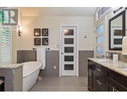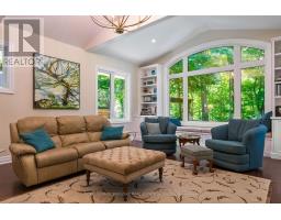 Nestled on a quiet crescent in the highly sought-after Falgarwood neighbourhood, this rare property sits on a stunning 75x175 ft ravine lot w/ no rear neighbours, offering unmatched privacy & breathtaking views year-round. From the moment you arrive, the home's curb appeal impresses w/ its aggregate driveway, stone walkway, & inviting covered TimberTech front porch w/ overhead fan & lighting. Inside, you'll find large primary living areas featuring crown moulding throughout, 2 cozy gas fireplaces, & hardwood floors on the main level, creating a warm & elegant atmosphere. The chefs kitchen, recently painted white and fully expanded in 2015, features granite countertops, a custom window seat, bar, & pantry, & opens to a spacious back deck w/ a skylight overlooking the peaceful ravine, perfect for morning coffee or summer entertaining. This home has been meticulously updated over the years, including spa-like bathrooms with soaker tubs and glass showers, a fully finished basement w/ custom built-ins (2017), & a spectacular great room addition w/ a brand-new roof, soffits, & eaves (2024). Upstairs showcases engineered hardwood flooring, a skylight above the landing, & a private balcony in the primary suite, while 3 additional bedrooms feature soft, neutral carpeting. The backyard is a true sanctuary. Backing onto a lush, tree-filled ravine, it offers a level of privacy rarely found in Falgarwood. Professionally landscaped gardens w/ accent lighting, irrigation system & a soothing waterfall feature create a magical atmosphere, perfect for unwinding after a long day or hosting summer gatherings. W/ new fencing on both sides, this outdoor oasis is completely enclosed, offering peace of mind & a sense of seclusion. Located in the top-rated Iroquois Ridge School District, & minutes from parks, trails & convenient amenities, this home offers a rare blend of modern comfort & natural beauty. (id:50886)