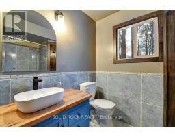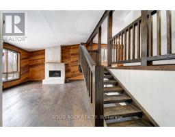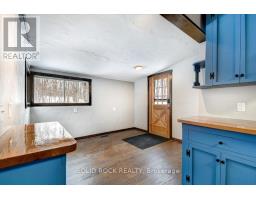 Discover this one-of-a-kind 3-level backsplit that blends craftsmanship, warmth, and character throughout. Featuring 2 bedrooms, 2 bathrooms, and a finished basement with in-law potential and its own private entrance, this home offers flexibility for extended family or guests. Step through the double-door entry into a welcoming foyer complete with a large closet and custom bench. The home showcases handcrafted woodwork, engineered floors, and oiled cedar wood walls, creating a cozy, timeless atmosphere. The main-level primary bedroom provides convenience, while the floor-to-ceiling fireplace and unique wood staircase add to the home's rustic charm. The mezzanine-level kitchen and dining area feature epoxied oak countertops, new custom cabinetry, and thoughtful design touches that flow seamlessly into the bathroom. Set on just under 2 acres, the property offers a peaceful natural setting with limestone and basalt outcroppings, walking paths, and mixed deciduous trees. Located in Marmora, you'll enjoy proximity to Crowe Lake, the boat launch, and a vibrant, growing downtown. A truly special property where craftsmanship meets nature - ideal for those seeking privacy, character, and small-town charm. (id:50886)