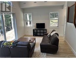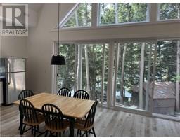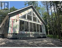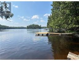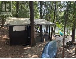 Privacy and seclusion! This stunning custom built cottage will wow you. Sitting atop 11 pristine acres on a laneway with only 3 other cottages and surrounded by forest, it boasts 300+ feet of shoreline where East and West Poverty Bay open up. The main floor consists of a huge great room with vaulted ceilings, gorgeous windows and triple sliding doors overlooking the water. Full kitchen with propane stove, loads of counter and cupboard space and a deep sink. The living room is huge with an eating area as well. Approved plans for a 36x10 foot deck out the front with lumber on site waiting to be built. There's also 2 huge bedrooms that can sleep additional people, a full laundry room setup and a large 4 piece bathroom. Fully spray foamed and with a propane furnace for potential winter use - depending on keeping the laneway plowed. Upstairs boasts an impressive loft space overlooking the great room with full view of the forest and the water. Walk through the double doors into the massive master bedroom, complete with en suite bathroom and large closet. The property also has a full bunkie that can sleep 3 more, plus a screened in kitchenette right by the water. Brand new dock, lake water, this remarkable property is waiting for you to start making family memories, or earn additional income through rental. Book your showing today and find out what true peace and tranquility looks like! (id:50886)
