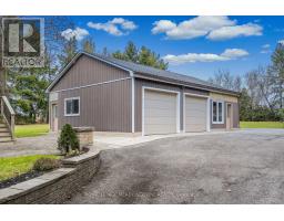 Welcome to this incredible rural property in Acton! Set on 1.66 acres, this beautifully finished 4+1 bdrm, 3 bath custom home offers privacy, space, and versatility. A canopy of mature trees and circular driveway with tons of frontage lead you to the home with built-in 3-car garage. There's also a large, detached shop/garage--perfect for extra vehicles, storage, or hobbies. The great room boasts a vaulted ceiling, bamboo floor, and wood-burning fireplace with limestone mantel, framed by triple-paned windows overlooking the serene landscape. A bright formal living room, with in-ceiling speakers, offers another gathering space surrounded by windows. The updated kitchen features a sit-up island, stainless steel appliances, marble backsplash, and plenty of cabinetry. Off the kitchen, a laundry/2nd kitchen includes an additional stove, wall oven, stovetop, dishwasher, and walk-out to the backyard. In total, the home offers 3 stoves, 2 stovetops, and multiple walk-outs--from the primary suite, the second kitchen, rear entry to the detached garage, and front door. The primary suite addition is a private retreat with vaulted ceiling, laminate floors, walk-out deck, electric fireplace, and access to an updated 4pc bathroom with glass shower. Bedrooms 2 and 3 are spacious with wood-beamed ceilings and large windows, while the 4th bdrm is currently a dressing room accessible from the primary. The finished basement with 2 separate staircases and its own entrance includes a recreation room, bedroom, updated bathroom, storage, and flex spaces--ideal for multi-generational living. Outdoors, enjoy a concrete patio with outdoor kitchen/BBQ, double gazebo, hot tub, a large barn (as-is) and open green space. Bonus: eaves on house have leaf guards. With 6 in wall/ceiling speakers and 3 wood-burning fireplaces +1 electric, this home blends warmth, character, and function. All of this with the convenience of nearby amenities-GO Train, schools, shopping, parks, restaurants, and golf. (id:50886)