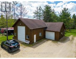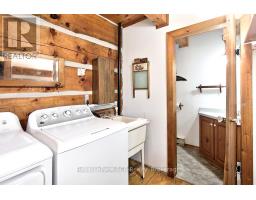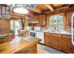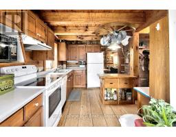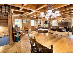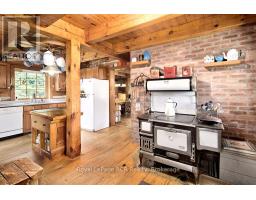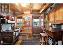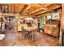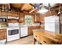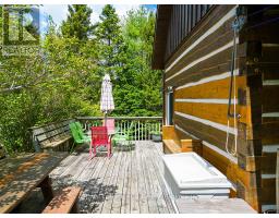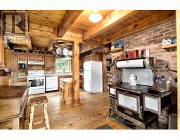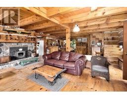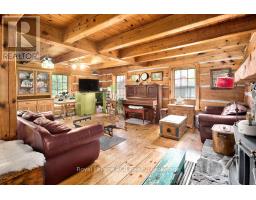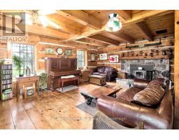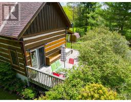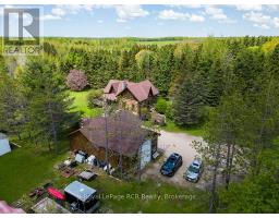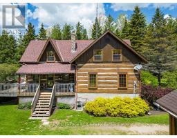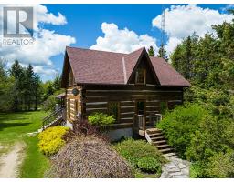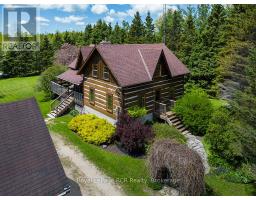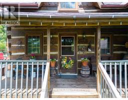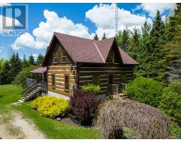 Full-log retreat on 5 private acres with a 3-bay shop. A covered front porch leads into the country kitchen with breakfast nook, a wood-burning cookstove, and a walkout to the side deck for morning coffee. Main floor laundry and a handy 2-pc bath. The heart of the home is a spacious dining/living room where wide-plank floors and a stone fireplace set the tone for relaxed family time and easy entertaining.Upstairs are four bedrooms, including a generous principal with cheater access to a 5-pc bath featuring a classic roll-top tub. The fourth bedroom is an ideal nursery, office, or dressing room. The finished lower level extends your living space with a cozy rec room warmed by a woodstove, plus a hobby room and a wood/utility storage area.Outside, enjoy room to roam: mowed trails weave through the property to a natural, seasonal stream at the west edge. The detached, L-shaped approx. 1,359 sq ft garage/workshop offers excellent space for vehicles, tools, and toysperfect for the hobbyist. Just a short drive to town amenities, this is comfortable country living with character, privacy, and plenty of space to make it your own. (id:50886)