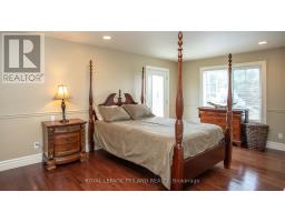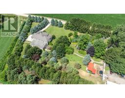 Situated in the countryside, but mere minutes away from Ridgetown and major highway access, on a 2.6-acre property, this custom built 7,000 sqft home features over 6 bedrooms, 6 bathrooms, a private elevator, an indoor pool, Nordic spa and loads of opportunity for income potential. Entering the home through the double front doors and into the open concept foyer, you will notice the fine hardwood curved staircase and the elegant living room with cathedral ceilings and gas fireplace. To the left is the main floor primary bedroom suite with hardwood flooring, walk-in closet and 5-piece ensuite bathroom. The main floor kitchen is a Chefs dream with plenty of countertop space, breakfast bar island, 2 sinks, custom cabinetry and new premium stainless-steel appliances. Adjacent to the kitchen is the formal dining room with stunning 16-foot ceilings, a 13-foot hardwood dining table and large window that lets in lots of natural light. On the second floor, you notice premium hardwood flooring and an impressive open concept cat-walk view to the living room and foyer below. 4 bedrooms are located on this floor, 2 of them having ensuite bathrooms and one also featuring an exterior balcony. The lower level of this home is fully finished and is accessible from 3 points of entry (garage, pool room, main floor). Tile flooring throughout, there is a large rec room, bonus bedroom (with walk-up to pool room), an exercise room and a 4-piece bathroom. The indoor pool is situated in a climate-controlled environment and is ideal for year-round enjoyment. All three levels of the house, including from the 3-car garage, are accessible via a residential personal elevator. Enjoy the outdoors on this private, tree-lined property featuring a covered gazebo, 2 pergolas connected with a walking path. Relaxing day spa amenities continue outside with a newly built Nordic sauna, with cold plunge basin just outside on the deck which features a fireplace and overlooks the pond. (id:50886)