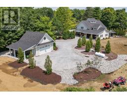 A very rare find, this exceptional custom-built home is nestled on a pristine 18-acre parcel offering private woodland trails, expansive landscaped grounds, and an unmatched standard of quality throughout. From the moment you arrive, you'll feel the sense of care and craftsmanship that defines this stunning property. Designed with both elegance and comfort in mind, the spacious layout is highlighted by a warm, welcoming main floor family room featuring a statement flame fireplace. The heart of the home is a beautiful custom kitchen complete with large granite island, custom built-ins, built-in buffet, and formal dining room perfect for everyday living or entertaining guests in style. Coffered and custom ceilings add character throughout the home, while a neutral palette offers timeless sophistication. Step outside to relax under the covered pergola, surrounded by meticulous landscaping that blends seamlessly with the natural beauty of the land. Upstairs, you'll find vaulted ceilings with skylights that flood the space with natural light. All three bedrooms are generously sized and offer walk-in closets and the primary bedroom features a spa-like ensuite with a glass-enclosed shower and soaker tub. Designed with comfort and quality in mind, this home has radiant in-floor heating on all levels with individual zone control, central air and HRV system all topped off by a built in Cummins generator in the event of power outage. Attached 2-car garage with inside entry is heated and insulated. Additional 2 car detached garage/workshop with lean-to for storing your toys or equipment is fully wired and ready to go - perfect for hobbyists and DIYers alike. If quality and craftsmanship are what you're looking for in your next home this may be the perfect opportunity for you. (id:50886)