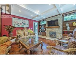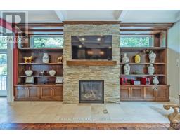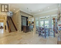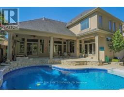 Stunning luxury executive on Shore Road w/high-end finishes provides 3995sqf (above grade)open concept design of 2 family rooms on main & upstairs, 5 bedrooms,5 baths ,12' ceiling foyer , Martini Bar with one Lime Stone Fireplace(totally 4 fireplaces) ,great room offers hardwood flooring ,coffered ceiling & Herringbone inlay, direct access to covered hot tub from master ensuite on main floor with 2 programmable shower heads, private dressing room walk-in closet, walk-in shower, & separate toilet room; heated-floor kitchen with Butlers Pantry, maple cabinetry, stone range hood echoes Viking gas stove, wall oven, the granite countertops and sub zero fridge. Backing onto trees, the sod-free back yard has covered stamped concrete patio, heated saltwater in-ground pool, hot tub & lounge area & outdoor fireplace! (id:50886)