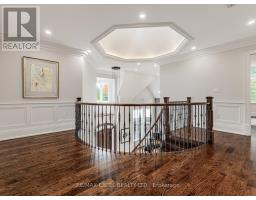 A timeless custom-built masterpiece in prestigious South Richvale, one of Richmond Hill's most desirable neighbourhoods. Set on a premium 75 ft 148 ft lot, this elegant home offers over 6,800 sq.ft. of refined living space with 10 ft ceilings on the main floor and 9 ft ceilings on the second floor and basement, blending classic architecture with modern comfort.The grand 20 ft foyer welcomes you with Italian marble flooring, a dazzling crystal chandelier, and an octagonal dome skylight with LED cove lighting. Flowing from the foyer, the living room features hardwood flooring, soaring ceilings, and a striking two-storey stone feature wall that radiates warmth and sophistication.The formal dining room shines with hardwood floors, pot lights, and a detailed coffered ceiling - perfect for elegant gatherings. The family room is spacious and inviting, with a waffle ceiling, fireplace, and custom built-in shelving - a perfect place to relax or entertain. The office, quietly positioned nearby, includes custom cabinetry and a walkout to the patio, offering an ideal setting for work or study.The gourmet kitchen stands at the heart of the home, showcasing a large center island, sleek cabinetry, and premium built-in stainless steel appliances. A bright breakfast area opens to a custom wood deck, seamlessly connecting indoor and outdoor living.Upstairs, the primary suite is a true retreat, featuring a spa-inspired 7-piece ensuite and a custom walk-in closet. A second ensuite bedroom provides privacy and comfort, while two additional bedrooms share a semi-ensuite, each enhanced with pot lights and organized closets.The finished walk-up basement offers a home theatre, custom wet bar, fitness room, and nanny/guest suite. Professionally landscaped front and side yards complete this exceptional residence, where timeless design and fine craftsmanship define the essence of luxury living. (id:50886)