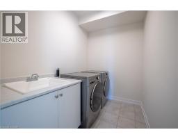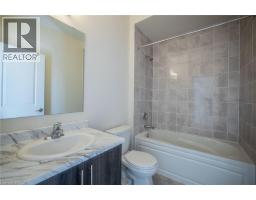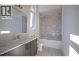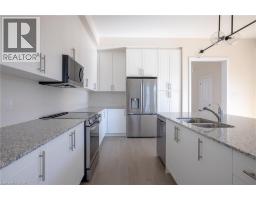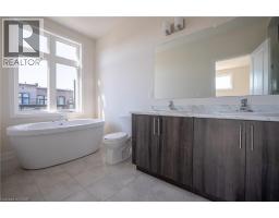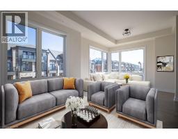 Welcome to Upper Joshua Creek. This modern end unit townhome offers 5 bedrooms, 4 full and 1 half baths, and 2,560 sq ft of finished living space. The ground level opens to a welcoming foyer with a laundry room that has direct garage access, plus a bright corner bedroom with its own three piece ensuite. Hardwood and ceramic tile run throughout the home. The second floor is light filled with an open concept kitchen, dining, and living area under 10 ft ceilings. The kitchen features stainless steel appliances, a centre island, and generous storage. The dining room has a walkout to the balcony for easy indoor to outdoor entertaining, and a powder room completes the level. The primary bedroom includes a private balcony and a 5 piece ensuite with a freestanding deep soaker tub, seamless glass shower, and a double vanity with undermount sinks. Three additional bedrooms and two 4 piece baths provide flexible space for family, guests, or a home office. Minutes to 403, QEW, and 407, and close to parks, trails, shops, and well regarded schools. (id:50886)