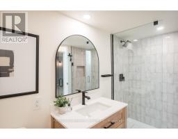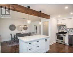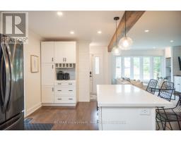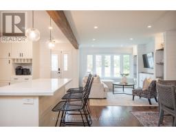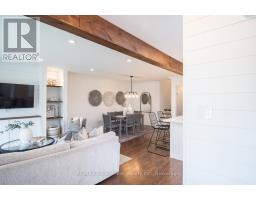 Beautifully renovated, this four-level back split offers a functional, family-friendly layout with stylish updates throughout. The main level features an open concept living and dining area with smooth ceilings, pot lights, crown molding, and a shiplap feature wall with custom built-ins. The upgraded kitchen is complete with quartz countertops, white shaker cabinetry, stainless steel appliances. A large centre island provides breakfast bar seating for three and a convenient central vacuum kick sweep, while the coffee bar and additional pantry add both storage and function. Upstairs are three bedrooms and a fully renovated five-piece bathroom with a double sink vanity, stylish wall and floor tile, and updated hardware and fixtures. A custom walk-in hallway closet offers smart extra storage, and the bright primary bedroom features updated closet doors and abundant natural light. The finished lower level offers a spacious recreation area with large windows with the addition of a custom three-piece bathroom, showcasing a checkerboard tile floor, glass shower and stylish vanity and hardware for a fresh, modern look. The lowest level provides additional storage and a functional laundry area. Set on a quiet street in a family-oriented Burlington neighbourhood, with a lush, private and fully fenced backyard, this move-in-ready home offers exceptional value and appeal for today's buyer. (id:50886)