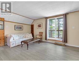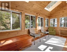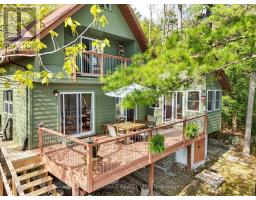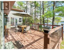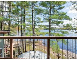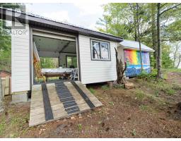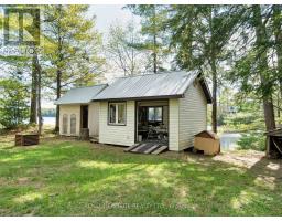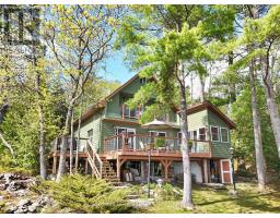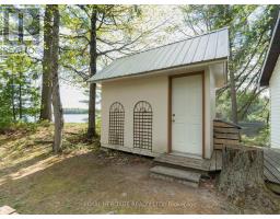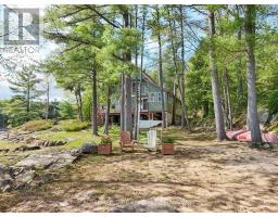 Get ready for an exciting new chapter on this beautiful lake in Muskoka. Just steps from the water's edge, this fabulous 2-storey cottage offers 3-season living with over 300 ft. of spectacular south-west facing shoreline. Sitting in its own bay on over an acre of leased land, the property boasts privacy, sandy beach, and water surrounds. Gather on the dock for swimming, fishing and boating activities or lounge on any of the multiple decks. With 4 sets of sliding doors, 5 skylights and south western exposure, natural light fills the bright interior. The cottage features 1436 sq. ft. of fully furnished airy living space, including 3 bedrooms, 2 baths, a spacious second floor, and classic Muskoka sunroom. The fully equipped kitchen has water and forest views and ample space to prepare summer meals. The large and inviting open concept living space boasts double sliding doors, a roomy deck overlooking the lake, and a wood-burning stove. The sunroom beckons for morning coffee, card games, or reading. A curved wooden staircase leads to the upper floor, with a king bedroom and a second bedroom ideal for guests or a home office, and another elevated deck with spectacular lake views. The attic offers great potential for a spacious loft retreat. A bright modern new second bathroom has an operable skylight to bring the outdoors in. Outside, there are 3 accessory buildings. One is presently a workshop/pumphouse/utility room, another a discreet outhouse. The third could be an ATV garage, art studio, recording studio, childrens playhouse, or private office. The double garage doors open towards the yard and the lake. Lots of storage areas both inside and outside the cottage plus a boat storage room to hold canoe, kayaks, and water toys. Just 2 hours from Toronto, you're a short drive off Hwy 400 and 15 min to beautiful Bala. This cottage has been extensively upgraded over the past few years and is ready for the next owner to move in this summer. (id:50886)