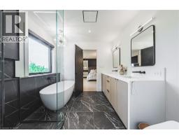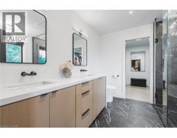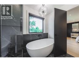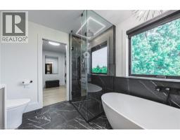 Custom, all brick, 2024 new build masterpiece sitting on a gorgeous lot backing onto mature greenery, and boasting a stately-modern presence from the road. Prestigious street lined with other custom homes. Prepare to be memorized by soaring ceiling in foyer open to above with breathtaking chandelier and open riser, white oak staircase with rod iron spindles. Perfect main level design with dining/living room separated by two sided fireplace. Family room overlooking private backyard with massive high end aluminum windows that continue through out the home. Tasteful black kitchen features chic flat panels and undermount lighting and is accentuated with high-end appliances, quartz countertops and massive island with ample storage on both sides. Gorgeous LED lighting in ceiling gives a modern presence. Second floor is well equipped with four generous size bedrooms each featuring their own walk in closets. Master bedroom boasts luxurious ensuite with glass shower, soaker tub, double sink with high end faucets and walks through to a dream closet with custom built ins and ideal design. Second bath is a jack and fill being shared by two of the four bedrooms. All bedrooms are blanketed in stunning hardwood floors and boast light drenched windows giving a lively presence. Open staircase also leads to basement featuring 9 foot ceilings and oversized basement windows. Paved four car driveway and premium garage doors complete this homes curb appeal. This home is minutes to arterial infrastructure and all amenities. Luxury Certified. (id:50886)