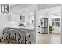 A wonderful opportunity in the Downtown Burlington core! This 3 bedroom townhome was fully updated in 2024. Custom touches including new cabinetry & built-ins, stairs, railings, and hardwood floors top to bottom. The bright new kitchen has ample storage, quartz countertops, and new stainless steel appliances. The high ceiling living space with natural light has an oversized sliding door to the private back deck & tree lined green space for a tranquil retreat in the city. The generously sized designer-grade 4 piece bathroom has a luxurious feel consistent with the lifestyle this location offers. 2 exclusive use parking spaces, inside access from the garage, visitor parking, and the year round property upkeep offers a low maintenance lifestyle for families, retirees, and investors alike. Steps to all of the restaurants, shopping, amenities, and waterfront festivals that Downtown Burlington has to offer. Great Schools, parks, public transit, and major highway access all within minutes. (id:50886)