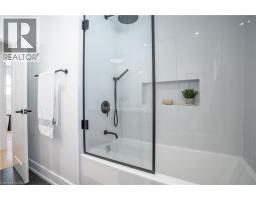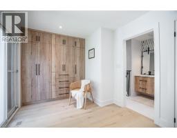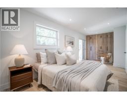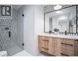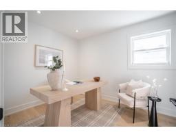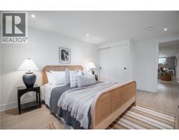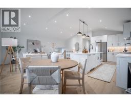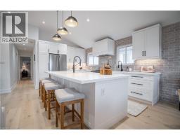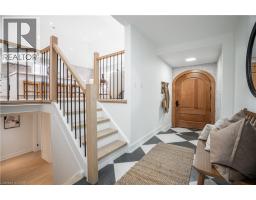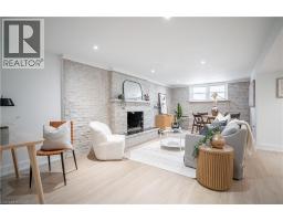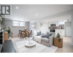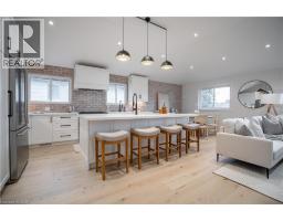 No detail has been overlooked in this absolutely breathtaking 4-bedroom, 3-bath, 2-kitchen raised bungalow, situated in the prestigious Tyandaga community! From the freshly painted exterior to the custom arched oak wood front door, this home makes a stunning first impression. Step inside to a foyer full of character, featuring timeless checkered tile flooring and a convenient coat closet at the end of the hall. Upstairs, every finish is custom-crafted, from the engineered hardwood floors and vaulted ceilings with pot lights to the designer kitchen showcasing an 8-ft island, SMEG stainless steel appliances, and solid wood cabinetry. The elegant backsplash flows seamlessly into the dining area, which offers ample seating and overlooks the spacious living room, the perfect spot to cozy up for family movie nights or cheer on your favourite team this winter. Down the hall, the primary suite is a true retreat, complete with sliding doors to a private balcony overlooking the backyard, custom built-in oak closets, and a luxurious 3-piece ensuite. A second bedroom (currently used as an office) and a stunning 4-piece bathroom with dual sinks, quartz countertops, and a custom vanity complete the upper level. The lower level offers even more living space with a beautiful family room featuring a stone fireplace, a second kitchen ideal for a potential in-law suite, two additional bedrooms, laundry, and another elegant 4-piece bathroom. Step outside to your own private oasis: a fully fenced backyard with a brand-new wooden deck, stone patio, and lush green space surrounded by mature trees. Additional highlights include a brand new instant water heater, a double driveway with single-car garage, updated lighting throughout, and a 2019 roof. Located in the highly sought-after Tyandaga neighbourhood, known for its tree-lined streets, golf course, and close proximity to parks, trails, top-rated schools, and all amenities, this home truly offers the best of Burlington living. (id:50886)