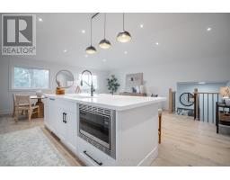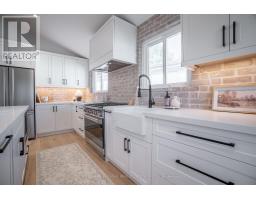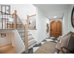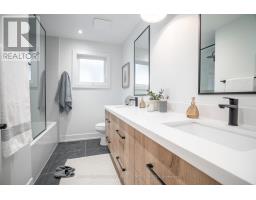 No detail has been overlooked in this absolutely breathtaking 4-bedroom, 3-bath, 2-kitchen raised bungalow, situated in the prestigious Tyandaga community! From the freshly painted exterior to the custom arched oak wood front door, this home makes a stunning first impression. Step inside to a foyer full of character, featuring timeless checkered tile flooring and a convenient coat closet at the end of the hall. Upstairs, every finish is custom-crafted, from the engineered hardwood floors and vaulted ceilings with pot lights to the designer kitchen showcasing an 8-ft island, SMEG stainless steel appliances, and solid wood cabinetry. The elegant backsplash flows seamlessly into the dining area, which offers ample seating and overlooks the spacious living room, the perfect spot to cozy up for family movie nights or cheer on your favourite team this winter. Down the hall, the primary suite is a true retreat, complete with sliding doors to a private balcony overlooking the backyard, custom built-in oak closets, and a luxurious 3-piece ensuite. A second bedroom (currently used as an office) and a stunning 4-piece bathroom with dual sinks, quartz countertops, and a custom vanity complete the upper level. The lower level offers even more living space with a beautiful family room featuring a stone fireplace, a second kitchen ideal for a potential in-law suite, two additional bedrooms, laundry, and another elegant 3-piece bathroom. Step outside to your own private oasis: a fully fenced backyard with a brand-new wooden deck, stone patio, and lush green space surrounded by mature trees. Additional highlights include a new HVAC system and instant water heater, a double driveway with single-car garage, updated lighting throughout, and a 2019 roof. Located in the highly sought-after Tyandaga neighbourhood, known for its tree-lined streets, golf course, and close proximity to parks, trails, top-rated schools, and all amenities, this home truly offers the best of Burlington living. (id:50886)