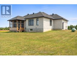 Welcome to this stunning all-stone 5-bedroom, 3-bathroom Energy Star-rated bungalow (2023), blending timeless style with modern comfort, set on a private 2-acre lot just minutes from historic Merrickville. With10ft ceilings on main level and 9ft on lower level. Step inside the beautifully tiled entry and you're greeted with a bright, open layout where the gorgeous chefs kitchen and great room are the heart of the home. Dream kitchen for any cook, custom tall cabinetry, quartz countertops, massive island & breakfast bar, a second sink, plus top-of-the-line stainless appliances. Upgrades include gorgeous light fixtures, beautiful white textured tile backsplash, pot filler tap above stove, and pantry. The great room's 11 ft ceilings, huge windows, stunning hardwood floors, and cozy fireplace create a warm, welcoming space for living and entertaining. The spacious primary suite a walk-in closet and a spa-inspired 5-piece ensuite with a soaker tub and glass shower. Two more bedrooms, plus a flexible room perfect for a home office or den, offer plenty of options for family or guests. A main floor laundry room and a mud room for more functionality. Professionally finished lower level with over 2,000 sq ft, Featuring large family room with fireplace, full kitchen/bar, perfect for hosting gatherings or accommodating extended family. Two additional large bedrooms, full bathroom and a huge rec room complete. Outdoors, unwind in the huge screened-in Muskoka room while taking in beautiful country views, or enjoy the open yard, future pool, gardens, play, or simply soaking in the peace and quiet. Massive 3-car garage tons room for vehicles, storage, etc. Boasting over 4,000 square feet of finished living space, this home offers the perfect blend of quality, comfort, and privacy, just a minutes from the historic rideau river and town of Merrickville with artists, restaurants, shops, dining, waterfall and rideau boat locks. This is truly peaceful paradise, you don't want too miss. (id:50886)