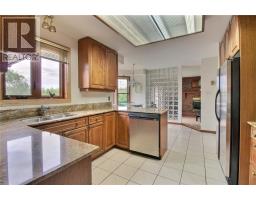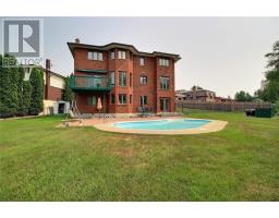 Located on an oversized lot, backing onto green space, this one of a kind home features a stunning kidney shaped 89,000 gallon salt water, heated, in-ground pool, perfect for relaxing or entertaining. Inside, you will find 3 spacious bedrooms, including a primary suite with a 4 piece ensuite with jet tub. All closets in the house have built-in lighting. Main and upper floors have hardwood and tile flooring which adds a touch of elegance. Always wanted a separate home office? This home has it just off the main foyer. Kitchen and eating area are bright with lots of sunny exposure. Granite countertops, stainless fridge, stove, dishwasher are included. Cabinets are oak but are in mint condition. Large dining room off kitchen. The fully finished lower level offers a large rec room, kitchenette, garden doors leading to the backyard. Also, another very large room, great for gym, hobby space or guest bedroom. Very nice lock stone driveway, patio area and walkways and oodles of gardens. Attached 20 x 20 double garage with access to main large foyer. (id:50886)