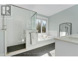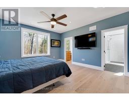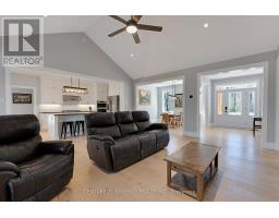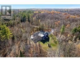 A rare opportunity to own a custom-built 3+1 Bed, 3 Bath, 2,200 sq. ft. walkout bungalow, situated on a beautiful 2.5 acre forested lot. The maintenance free exterior boasts Permalock aluminum shingles, buried eavestrough and vinyl siding. Stepping inside you're greeted with soaring 13' vaulted ceilings in the great room, a cozy propane fireplace and wide plank white oak engineered hardwood throughout the main level. The chef-inspired kitchen is appointed with granite counters, a 6' island, a cooktop, built-in oven and a walk-in pantry. The Primary's wing of the home hosts a generously sized bedroom with WIC, a gorgeous 5 piece ensuite with a walk-in shower, marble counter top, his and her sinks and 6' tub. The opposite wing has 2 bedrooms with a full bathroom, all while the picture windows throughout the house bring the outside feeling in. The covered rear deck with anti-slip PVC membrane allows you to enjoy nature while not getting soaked. The massive walkout lower level features 9' ceilings, a 24x24 basement work shop with separate entrance, the 4th bedroom and a rough-in for the 4th bathroom, all equaling to incredible potential for additional living space or business. For the EV enthusiasts, the oversized insulated double car garage has 2 wall chargers with Tesla and Universal connectors that share a 60Amp breaker. Not to worry, if the the power goes out the home is protected by a 20Kw Kohler generator ensuring your Starlink internet and EV's will always be charged and the lights will always be on. ** This is a linked property.** (id:50886)