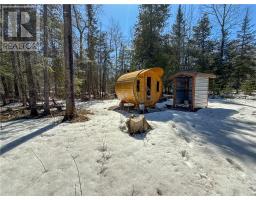 This charming seasonal recreational property is a dream come true for hunters and off-grid enthusiasts alike. Located just minutes from the picturesque town of Kagawong—home to Bridal Veil Falls, the scenic North Channel shoreline, boutique village shops, the municipal marina, and the Old Mill Heritage Centre—this property offers the perfect balance of seclusion and accessibility, including access to a private beach just 2 km away. Situated on a year-round municipal road, the property features mixed bush, established trails, two elevated tree stands, and a fully insulated off-grid cabin. The 18’ x 24’ cabin offers an open-concept kitchen, dining, and living area, two bedrooms, and a loft for additional sleeping space. An air-tight wood stove keeps the cabin warm during cool autumn nights, while cathedral ceilings with exposed beams create a rustic, welcoming atmosphere. Step through the sliding doors onto a spacious 12’ x 24’ front deck—perfect for BBQs, relaxing after a hunt, or soaking up the peaceful surroundings. The back deck leads to a wood shed, conveniently located for year-round wood access. The cabin is powered by a solar panel system with battery storage for lighting and USB charging, and it’s also wired for a 110V generator. Propane powers the kitchen and indoor lighting, making this a fully functional off-grid experience. Additional structures include a storage shed, outhouse, and a unique outdoor shower stall for an immersive nature experience. And to top it all off—relax and unwind in your very own wood-burning barrel sauna, the perfect way to end a day spent on the trails or in the stand. Whether you're looking for a hunting camp, a private retreat, or a rustic getaway, this property has it all. Book your private tour today and discover your own slice of Northern Ontario wilderness. (id:50886)