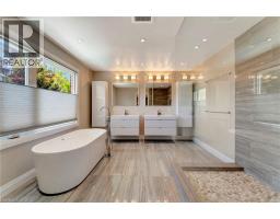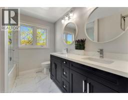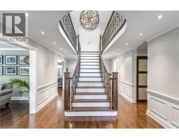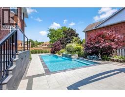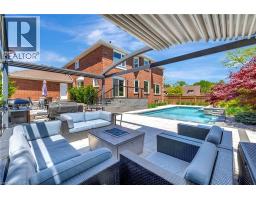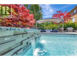 Where timeless elegance meets modern luxury in the heart of Burlingtons prestigious Tyandaga neighbourhood. This fully renovated, four-bed home offers an exceptional blend of sophistication, comfort, and style making it the perfect place to call home. From the moment you arrive, the professionally landscaped front yard sets the tone with its lush perennial gardens, stately armour stones, and inviting stone patioan ideal spot to enjoy your morning coffee under the shade of mature trees. Step inside to a grand foyer highlighted by a sweeping Scarlett OHara staircase. The open-concept kitchen/dining area is the heart of this home, designed for both everyday living and elegant entertaining. Featuring a nine-foot island, cocktail bar with beverage fridge. The main floor also offers a cozy family room with custom built-ins and a sleek, stone-surround fireplace, a spacious formal living room perfect for quiet gatherings, and a large office ideal for working from home. A stylish two-piece bathroom and laundry room complete the main level. Upstairs, the luxurious primary suite features a spa-inspired 5-piece ensuite with a large walk-in shower, a cozy reading nook, and two walk-in closets. Three additional generously sized bedrooms and a beautifully renovated 5-piece bathroom complete the upper level. Step out from the kitchen into your private backyard oasis. Relax beneath the modern pergola with retractable roof perfect for enjoying sunshine or shade all season. The showstopper of the yard is the custom saltwater pool, complete with built-in stairs, a sleek stone water feature, and dual waterfalls your very own resort-style escape. Additional highlights include a double car garage with inside entry and backyard access, double driveway with ample parking, irrigation system, soffit lighting, hardwood flooring, Lutron SMART lighting system, California shutters, central vacuum, pot lights, new carpet (2025), and fresh paint throughout. Experience luxury living in Tyandaga (id:50886)