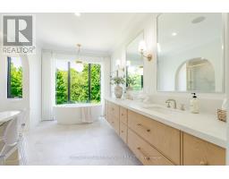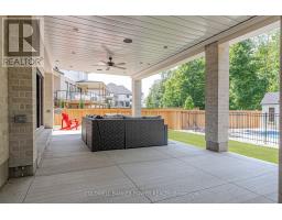 Prepare to be amazed. This 2023 custom built home by MCR Homes is unlike anything else in London. A rare blend of striking architecture thoughtful design & finishes that raise the bar for luxury living. Set on a premium walkout lot backing onto protected greenspace the home delivers privacy elegance & breathtaking natural views from every angle. Stunning sight lines & finishes is something yo see in person!The front elevation is a showpiece of design with bold roof pitches precast banding & stonework that set the tone for the property. A landscaped front yard finished with low maintenance artificial turf provides a polished welcome that matches the homes exceptional presence.The grand foyer makes an immediate statement w/ crown moldings detailed trim & a curved staircase over herringbone floors. Off the entrance the office features custom glass doors by Mark Deren built in cabinetry integrated audio & designer window treatments. The formal dining room is framed with coved ceilings.The family room is the centerpiece. Floor to ceiling windows capture views of the forest filling the space with light. A custom gas fireplace anchors the room. The kitchen crafted by Stoll Brothers includes solid wood cabinetry dovetail boxes high end appliances a large island & separate prep kitchen with walk in pantry. Expansive glass doors open to a covered composite deck for perfect indoor outdoor living.Upstairs 9 & 10 ft ceilings extend across 4 bedrooms each with hardwood walk in closets & access to 3 luxury baths. The primary suite spans the back with gorgeous views a spa inspired ensuite featuring picture window soaker tub curbless shower dual vanities & make up desk. Laundry includes custom built ins & a steamer unit.The finished W/out basement adds a home gym rec room wine cellar stone fireplace & guest suite w: ensuite. Sliding doors lead to a landscaped yard with artificial turf saltwater pool & multiple seating areas. (id:50886)