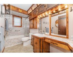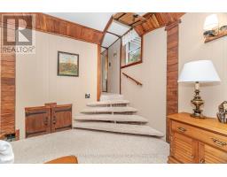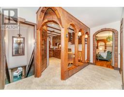 Nestled among mature birch and maple trees in one of Dundas' most desirable enclaves, The Avon House is a rare residence inspired by the warmth and craftsmanship of a mid-century Austrian villa. A graceful blend of natural stone, stucco, and wood detailing defines the exterior's distinctive Alpine character, while the surrounding landscape offers privacy and tranquility just minutes from downtown Dundas and the escarpment trails. Inside, the home welcomes you with custom wood-trimmed windows and doors, hardwood flooring, and a statement stone fireplace anchoring the living area. The kitchen captures the timeless charm of a 1950s villa-solid wood cabinetry with black wrought-iron hardware, where every corner is thoughtfully used showing a blend of artisan detail with everyday function. The level provides flexible space for recreation, a home office, or guest quarters. Outdoors, layer armour-stone, perennial gardens reveal the care and creativity of a meticulously planned landscape; a gardener's and nature lover's dream. A truly distinctive home where European Spirit meets Dundas Soul-offering serenity, craftsmanship, and enduring character. (id:50886)