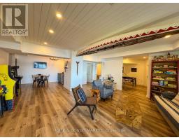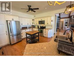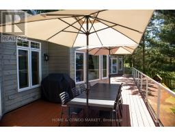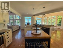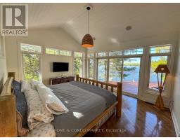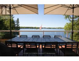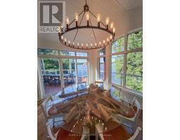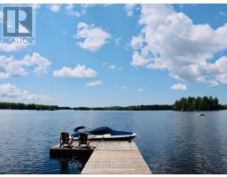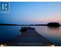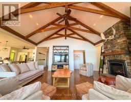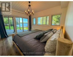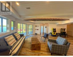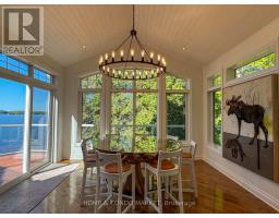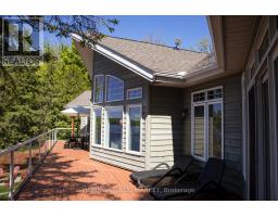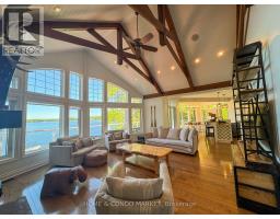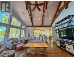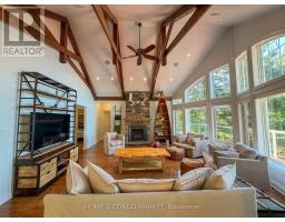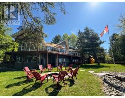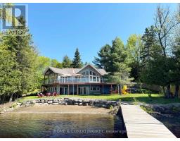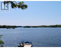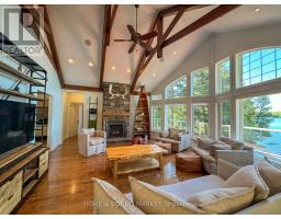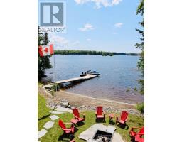 This is where family memories are made. Nestled on a rare crescent-shaped waterfront lot with coveted western exposure and long-lake views, this 4-season, 5-bedroom, 3-bathroom luxury cottage offers all-day sun and unforgettable sunsets over prestigious Manitouwabing Lake. 3200+ sq ft of finished space built by Cedarland Homes. The main living space features vaulted ceilings, rustic wood beams, and full-height windows framing panoramic views of the bay. The open concept kitchen, complete with breakfast bar, flows into the great room and dining area stepping out to a full-width deck with elevated lake vistas and a covered patio below. Your private sandy beach and shallow walk-in shoreline are ideal for kids, while the dock is perfect for fishing and boating. The walk-out lower level, finished in 2023, includes a family room, wet bar, games room, laundry and bathroom all designed for comfort and entertaining. Extras include double garage with hydro, municipally maintained road access, and an exclusive cul-de-sac with just 5 homes. Located just minutes from Manitou Ridge Golf Course, local bistro, butcher and General Store. Under 25 minutes to full service amenities in Parry Sound including, hospital, dining and shopping, plus amenities in neighbouring Muskoka. Whether you are seeking a private family haven or an investment-grade waterfront property, this home is move-in ready and made for lakeside living. (id:50886)