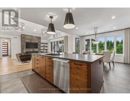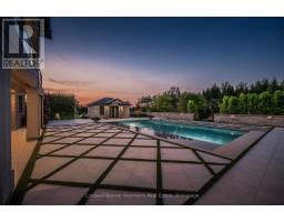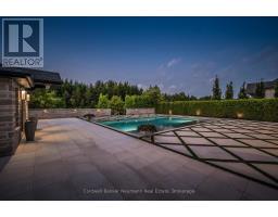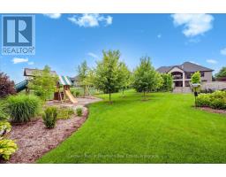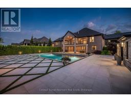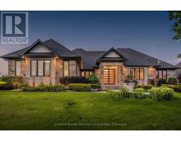 Nestled on a pristine 3/4 acre lot in the coveted Swan Creek Estates community, this exquisite all-stone bungalow redefines luxury living. With over 5,000 sq ft of masterfully crafted space, every detail of this ENERGY STAR certified residence speaks to sophistication and comfort. From the moment you enter through handcrafted Canadian mahogany doors, you're enveloped in architectural grandeur vaulted ceilings, 8' doors, and expansive windows that bathe the interiors in natural light. The open-concept design flows seamlessly through curated living spaces, featuring custom millwork, a sleek linear fireplace, and heated polished concrete floors on the lower level. The gourmet kitchen is a culinary showpiece, complete with integrated high-end appliances, bespoke cabinetry, a generous prep island, and a butlers pantry designed for effortless entertaining. Five bedrooms and four spa-inspired bathrooms including a serene primary ensuite with in-floor heating offer a retreat-like ambiance throughout. Step outside to discover a private oasis. The resort-style grounds showcase award-winning landscaping, a custom year-round pool with tanning ledges and ambient lighting, a charming Muskoka playset, and a built-in fire pit perfect for twilight gatherings. A cedar-lined pool house with private change rooms and an outdoor shower adds a touch of rustic luxury. This is more than a home its a lifestyle of elegance, comfort, and connection to nature. Schedule your private showing today and experience it for yourself. (id:50886)