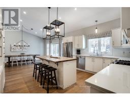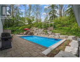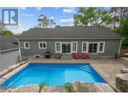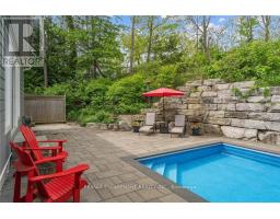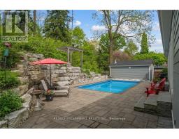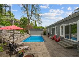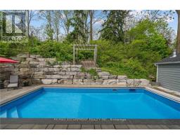 This remarkable custom-built bungalow is designed to impress, showcasing almost 3,400 square feet of finished living space with style and ease. Perfectly situated in the heart of Dundas, this home combines privacy with convenience just steps from scenic trails, top-rated schools, the arena, community centre, and charming downtown shops and dining. Inside, soaring vaulted ceilings, engineered hardwood floors and sun-filled open spaces create a welcoming atmosphere. The living room centers around a stunning gas fireplace with brick surround and rustic wood mantle, while the dining area flows seamlessly to the backyard perfect for entertaining. The gourmet kitchen is a chefs dream, complete with stainless steel appliances, a gas range, quartz countertops, abundant cabinetry, and a striking island with butcher block breakfast bar. The luxurious primary bedroom suite is your private retreat, featuring a spa-inspired ensuite, walk-in closet, and sliding glass doors leading directly to the backyard. Two additional bedrooms, a 4-piece bathroom, laundry, and inside access to the oversized 2-car garage complete the main level. The fully finished lower level expands your living options with a spacious L-shaped recreation room, a guest bedroom, 3-piece bath, and generous storage. Complete the wow factor when you step outside to your own backyard paradise: a two-tiered retreat with an inground pool, a large workshop/shed, and a wooded backdrop that offers both beauty and privacy. This is more than a house its a lifestyle. (id:50886)