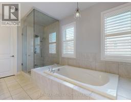 Welcome to Preserve's finest block! This executive 4+1 bedroom, 4.5 bathroom beautiful home located on a quiet crescent. Upgraded 5500+ sq ft (incl. finished basement) of living space. High ceilings on main, 9ft ceilings on bedroom level, Hardwood flooring, crown mldg, light fixtures, LED pot lights, oversized foyer tiles. Open concept kitchen with oversized quartz Island & breakfast bar ledge. Extra large 'Dacor' gas stove, oven & microwave, oversized fridge & upgraded range hood with backsplash. Open breakfast & family room, walkout to finished and fenced yard. Open Staircase with wrought iron railing. Second level with open concept loft with hardwood; 4 spacious bedrooms, 3 full baths & an oversized laundry room. Master features twin walk-in closets & twin sinks and oversized soaker tub. Walking distance to schools & parks. Minutes to Oakville hospital, shopping centers, Walmart & Costco, 407, 401, 403 & QEW. Extras: $$$ in upgrades, California shutters; High end appliances; Pot lights & fixtures T/O, Finished basement (1500+ sq ft) - large entertainment area, pot lights & fixtures. Basement offers a large entertainment area and full 3 piece bathroom. Must see the floor plan attached and virtual tour. (id:50886)