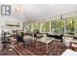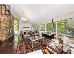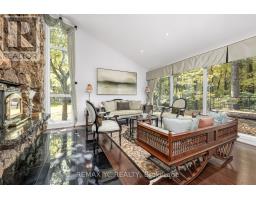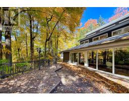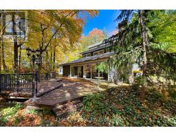Luxury Living on 4.19 Private Acres - A Modern Retreat in Nature. Nestled within 4.19 acres of lush, forested land, this custom luxury residence offers the perfect blend of privacy, elegance, and modern comfort-just minutes from the city. Beautifully renovated throughout, the home retains its original character with a heritage stone fireplace and striking volcanic stone wall in the living area. Expansive windows frame stunning ravine and forest views, letting you enjoy the beauty of every season from your living room. The chef-inspired kitchen features a large island and premium Miele appliances, including a built-in coffee machine, steamer, and warming drawer. A spacious office overlooking the backyard provides an inspiring workspace surrounded by nature. Upstairs, the primary suite is a private haven with a eletric fireplace, sitting area, and spa-like ensuite with heated floors. Additional bedrooms offer custom built-ins, large closets, and panoramic windows. The finished basement adds flexible recreational space, while modern updates include a 200 Amp electrical panel, new mechanical systems, and a comprehensive security system. An automatic gated entrance and private driveway lead you through serene woodlands to this exceptional home-where luxury meets tranquility in a truly rare natural setting. **3D Floor plan Link attached (id:50886)