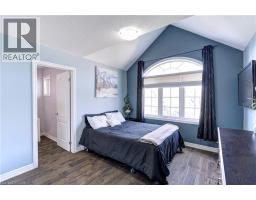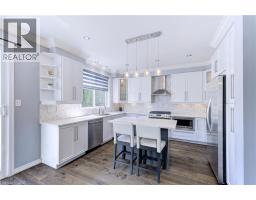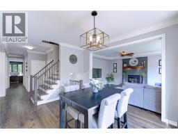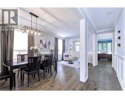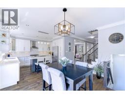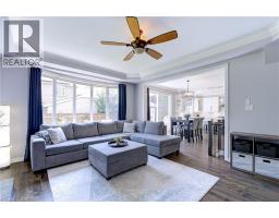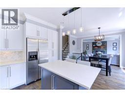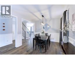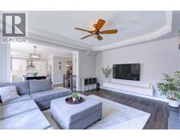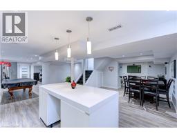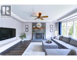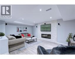 Stunning, detached home in Milton’s highly sought-after Beaty neighbourhood! Offering over 4,000 sq ft of beautifully finished living space, this 4-bedroom, 4-bathroom home is designed with modern living and entertaining in mind. The main floor features engineered hardwood throughout, timeless wainscoting trim, a large dedicated office, and a beautiful, open-concept kitchen/dinette with upgraded appliances, an island w/seating, and a walkout to a wood deck and fully landscaped backyard—complete with a cabana bar/shed and wiring ready for a hot tub! The family room is anchored by a cozy gas fireplace, perfect for relaxing evenings. Upstairs also features engineered hardwood throughout, generous bedroom sizes, a spacious primary retreat with a large walk-in closet and luxurious 5-piece ensuite, and a cozy sitting area by the landing. A versatile bonus room connects two of the bedrooms—ideal as a shared playroom, office/den, or walk-in closet. The convenience of a second-floor laundry room adds even more practicality. The fully finished basement offers laminate flooring, a kitchenette equipped with an island w/seating, dining area, family room w/electric fireplace, rec room, and a 3-piece bath—perfect for extended family, teens, or entertaining. Additional features include carpet free home throughout, furnace (2020), A/C (2022), and an attached 2-car garage with inside entry. Located just steps to parks, schools, transit, and all amenities, this home is perfect for families looking for space, function, and style in one of Milton’s most family-friendly communities. (id:50886)