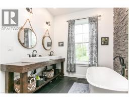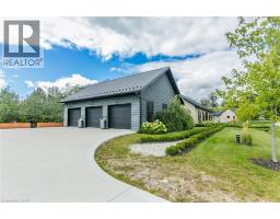 Spectacular Custom-Built Bungalow with Walk-out Basement, Triple Car Garage & Detached 2-Storey Garage & Shop on Two Acres—just 35–45 min from Waterloo! Nestled in an exclusive enclave of executive homes in Moorefield, this property offers a peaceful country setting with easy city access. Built like no other, it showcases structurally superior ICF (insulated concrete form) construction & a lifetime metal roof—the same quality extends to the det garage. Inside, the open-concept layout features exposed timber-frame details, soaring vaulted ceilings & 2 glass garage doors that open onto a 3-season porch.The kitchen, dining & living area impress w/ a stone f/p, concrete counters, oversized island & fantastic walk-in pantry w/ floor-to-ceiling storage. At its heart: an 8-burner Wolf gas stove, double ovens & upgraded range hood—over $40,000 in luxury appliances! Entertain year-round w/ the screened porch, complete w/ outdoor kitchen, brick hearth & fume hood for your bbq. The main floor also boasts a stunning primary suite w/ walk-in closet, spacious dressing rm & spa-inspired ensuite. A 2nd bedroom, currently an office, offers lovely treed views. A stylish mudrm, laundry rm & powder rm w/ live-edge barn door complete the main level. The fin w/o basement features heated floors, 2 bedrooms, 4-pc bath & expansive rec spaces—perfect for family gatherings or games night. 2 more w/o garage doors lead to the backyard & patio. For hobbyists, the 3-car gar is wired for an EV, while the sep insulated 2 storey wrkshp w/ electrical & wood stove provides endless options for projects, vehicles or gym. The nearly 2-acre property incl a pool-sized lot, new tiered deck, firepit area, treehouse & almost an acre of forest w/ a creek running through it. Your own private retreat! (id:50886)