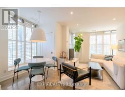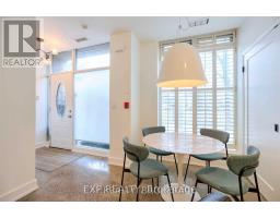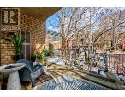Renovated King West condo-town at 142 Bathurst: 1 bed/1 bath corner with private street-level entrance and terrace in a gated gardengreat for dog owners. Bright SE exposure and 9' ceilings. New floors, pot lights, custom doors; Restoration Hardware fixtures, TOTO heated bidet and heated towel rack. Steps to King/Queen & TTC, dining and shopscondo convenience with a townhome feel. Night security. 1 locker included. Parking available at additional cost. Furnished option available; pets per condo rules. (id:50886)