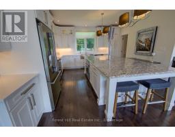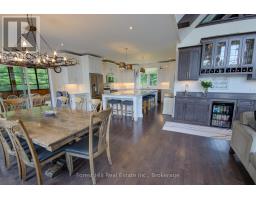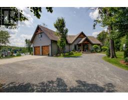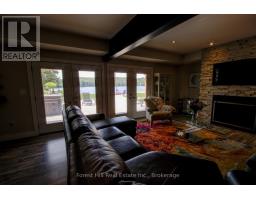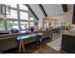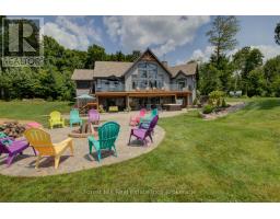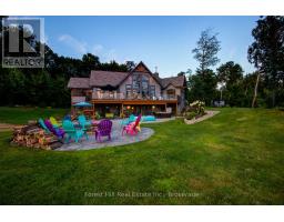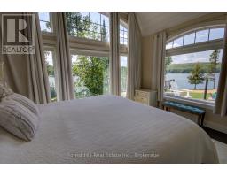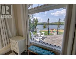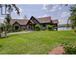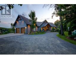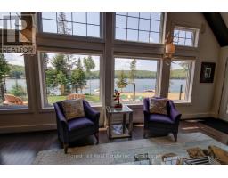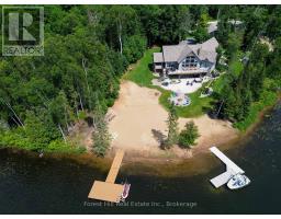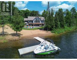 Welcome to your private sanctuary on the shores of pristine Himbury Lake, just north of Huntsville. This custom-crafted masterpiece offers over 4,000 sq ft of refined lakefront living, with 5 generous bedrooms and 3 beautifully appointed bathrooms, all designed to elevate every moment spent in this breathtaking setting.Set on a sprawling, level lot with professional landscaping and a custom stone entry, the home blends timeless materials with striking modern comforts. Cement board siding with granite stone accents, 50-year architectural shingles (2017), and top-line upgraded windows ensure enduring quality. From the expansive sand beach to the gentle walk-in shoreline, the waterfront is pure Muskoka magic, ideal for swimming, lounging, and soaking in long, uninterrupted lake views or a game of badminton or volleyball on the enormous sand beach.Inside, the gourmet kitchen is a chefs dream, featuring high-end appliances and two ovens, flowing seamlessly into a light-filled great room with soaring ceilings, grand windows, and a wood-burning fireplace. A cozy lofted nook offers the perfect perch for reading or working with inspiring lake views. The lower level walkout includes heated floors, 4 bedrooms, kitchenette and 5 piece bathroom, a propane fireplace, four sets of double doors to the patio, and a luxurious hot tub (2020) on the massive stone patio, creating an ideal all-season retreat. Never worry, it is wired with a Generator. The detached 30x40 heated garage/workshop has a loft for storage or bonus room. This property is a rare blend of comfort, craftsmanship, and natural beauty designed for those who appreciate lakeside living at its finest. (id:50886)